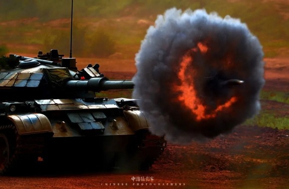 • 炮弹出膛。第14集团军某装甲旅进行年度实弹射击考核,2015年  岱天荣 摄.jpg