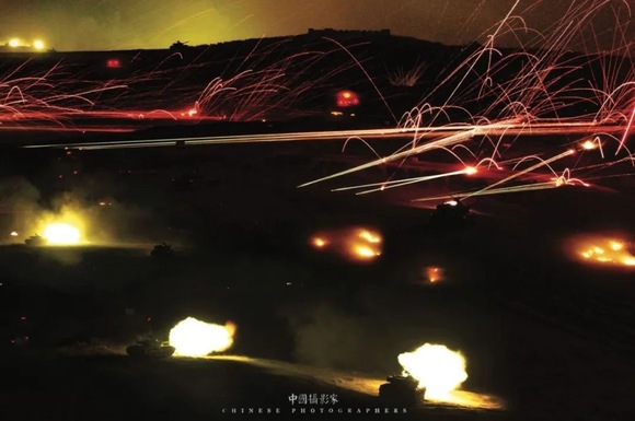 • 今夜无眠。南京军区某装甲师在三界训练基地进行夜间坦克团进攻演习现场,2006年  岱天荣 摄.jpg