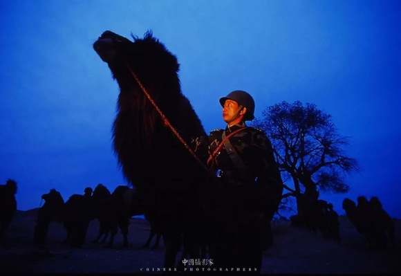 • 骆驼团长陈星美。内蒙古军区某边防团,2000年  岱天荣 摄.jpg