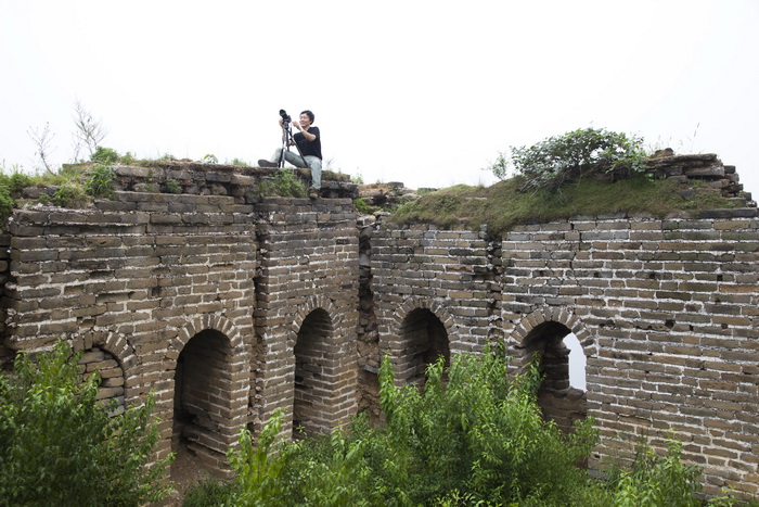 杨越峦在白羊峪长城“与羊共舞” 张湘摄