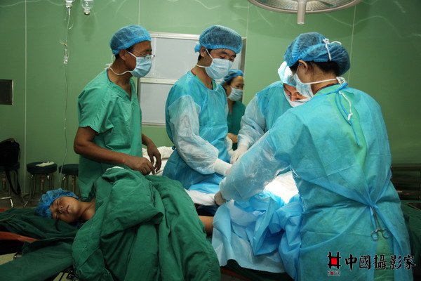 平煤集团总医院外科整形专家、整形烧伤科主任李松岳(左一)亲自执刀为小琴琴手术