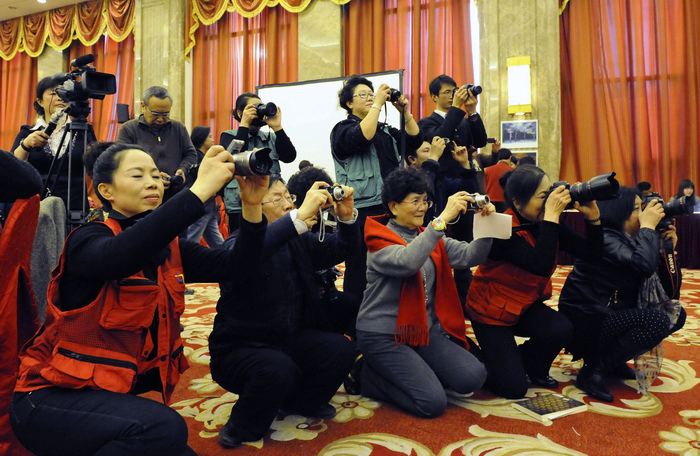 《中国摄影家》杂志社主编李树峰向女摄影家们表示祝贺 韩斌斌摄