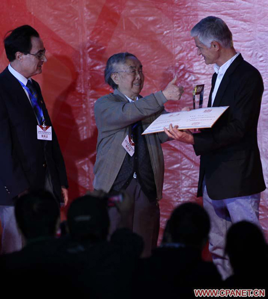 吕厚民向获得最高终身成就奖的纳切威表示祝贺 付党生摄