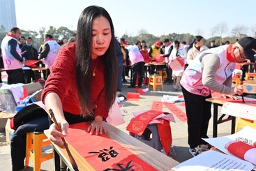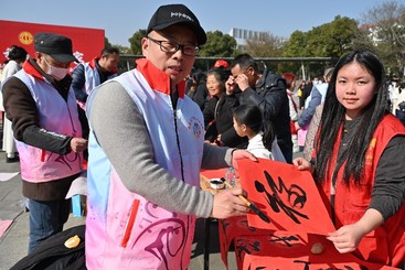 Z37835-2-277263-136****2802-05:大雅中国年·人日游草堂——2025年成都杜甫草堂博物馆春节文化活动,向游客书写并赠送书法作品。.jpg 组图